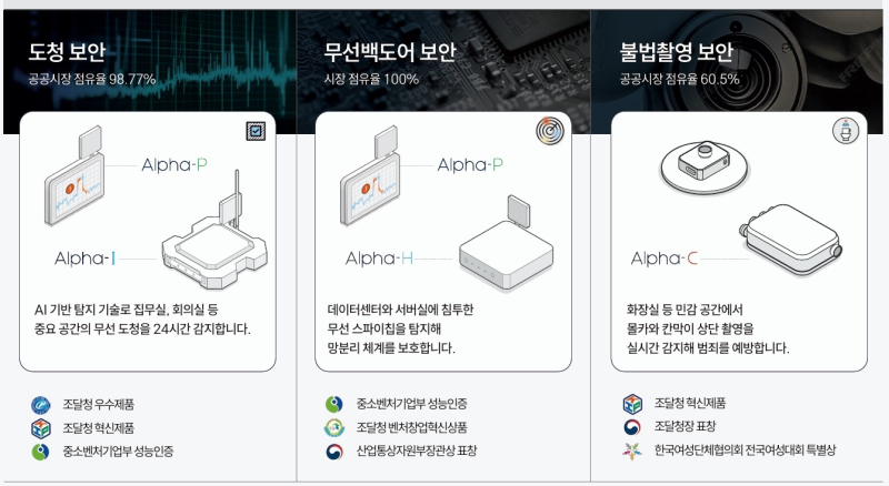이 분야에서 독보적인 기술력을 보유한 기업이 바로 지슨이다. 지슨의 ‘무선백도어 해킹 탐지 시스템(Alpha-H)’은 데이터센터나 서버실 등에 침투한 무선 스파이칩을 실시간으로 탐지해 망분리 체계를 보호하는 국내 유일의 솔루션이다. 이러한 기술적 독점력을 바탕으로 지슨은 해당 시장에서 100%의 점유율을 기록하고 있다.