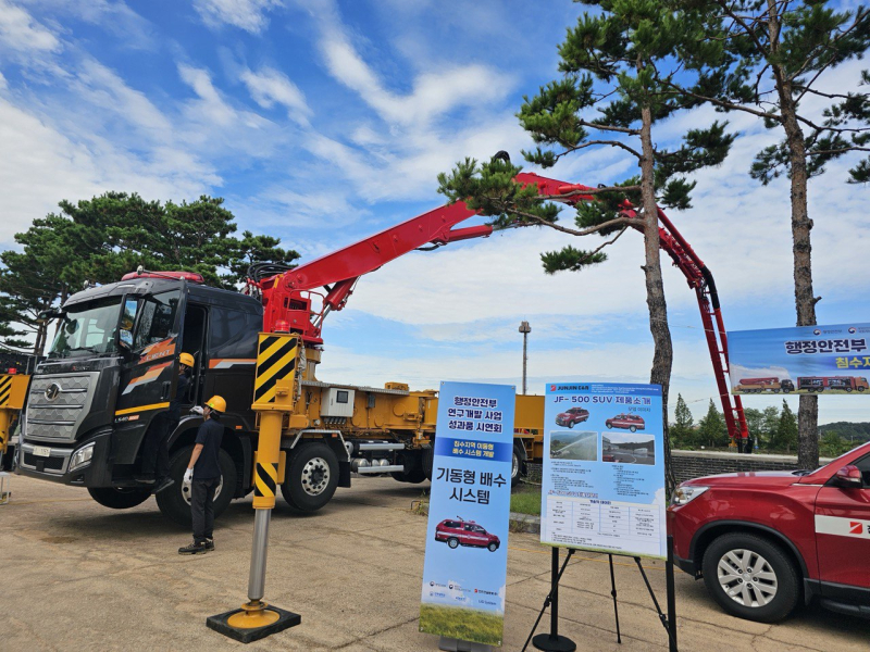 소규모 현장을 위한 기동형 배수시스템도 공개됐다. 분당 600L 처리 능력을 갖추고 고압 모드 지원이 가능해 제한된 공간에서도 초동 대응력을 높일 수 있다.