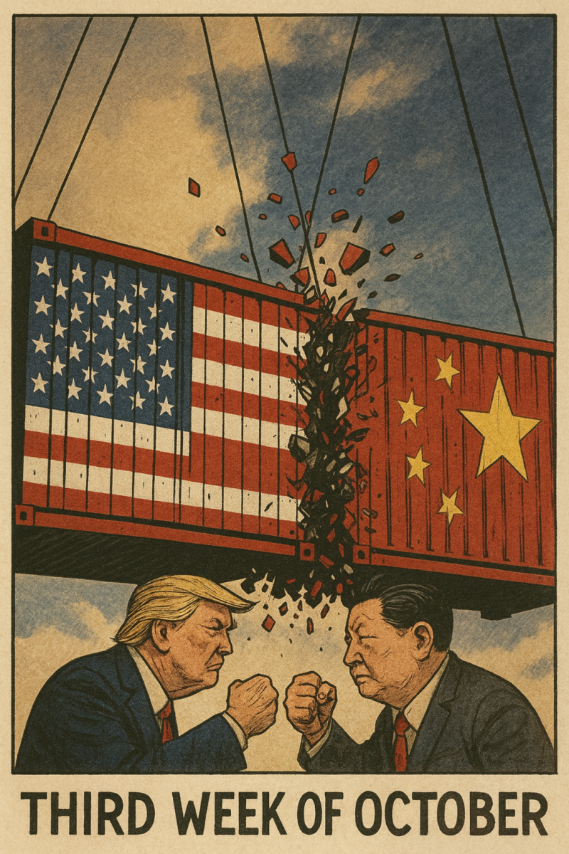 금요일 트럼프의 희토류 수출 통제 발언과 중국산 수입품에 대한 100% 관세 부과 위협으로 미 증시 급락 마감