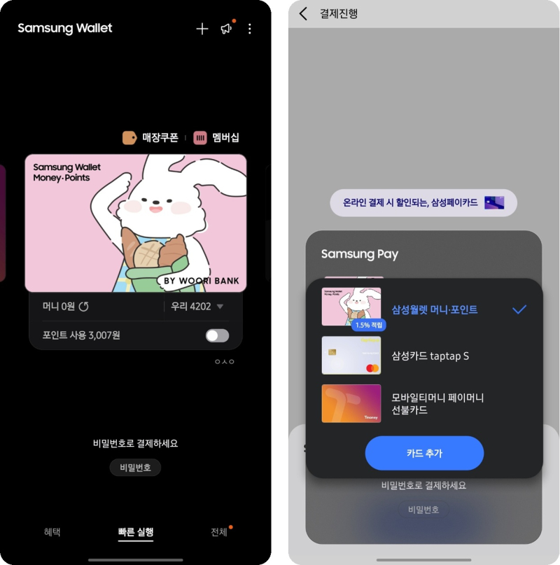 삼성 갤럭시 이용자 1800만명은 이제 은행 계좌로 충전한 '삼성월렛 머니'를 다날을 통해 온라인 쇼핑몰 등에서도 간편하게 사용할 수 있게 됐다.