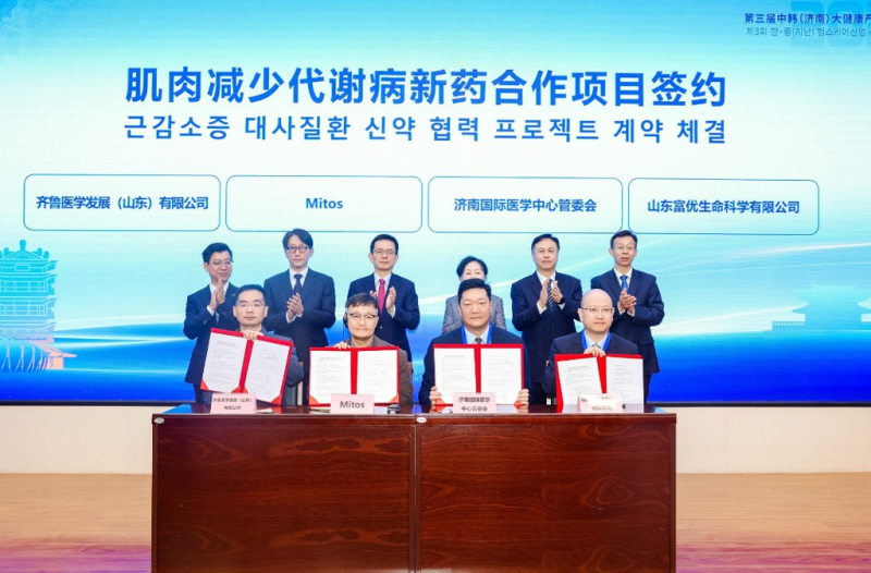 미토스 테라퓨틱스(Mitos Therapeutics)는 지난 24일 중국 산둥성 지난시에서 열린 2025 한·중 헬스케어 신기술포럼 및 비즈니스 상담회에서 중국 현지기관 3곳과 근감소증 치료제 공동 개발을 위한 전략적 협력(MOU)를 체결했다고 27일 밝혔다.