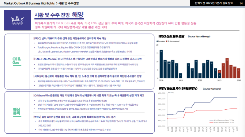 • 해양 수주잔고는 FPSO·FCS·WTIV 기준으로 3분기 인도 기준 약 23억 달러 수준
