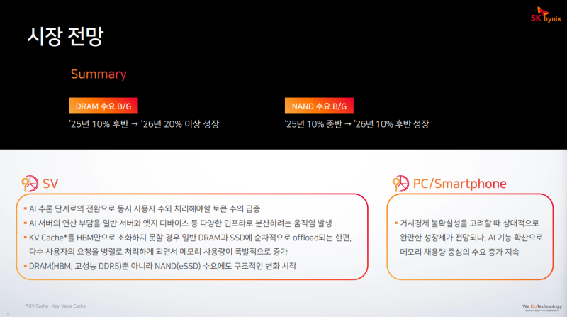• 스마트폰과 PC 시장은 거시경제 불확실성을 고려할 때 완만한 성장세가 예상되나 온디바이스 AI 확산으로 메모리 채용량 중심 수요 증가가 지속되는 양상