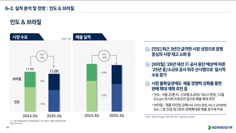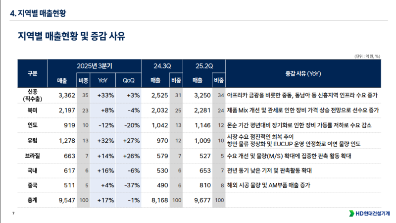 • 신기종 판매: 4월 바우마에서 공개한 36톤·40톤급 차세대 장비가 8월부터 본격 판매되며 성장에 기여