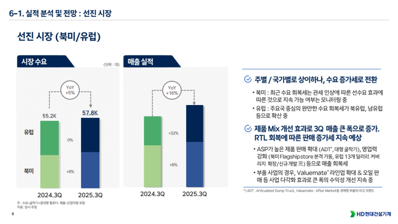 • 신흥국 자원 및 인프라 개발 수요 증가와 선진시장 딜러 재고 안정에 따른 홀세일 판매 확대 영향으로 전년 동기 대비 19.7% 성장 기록