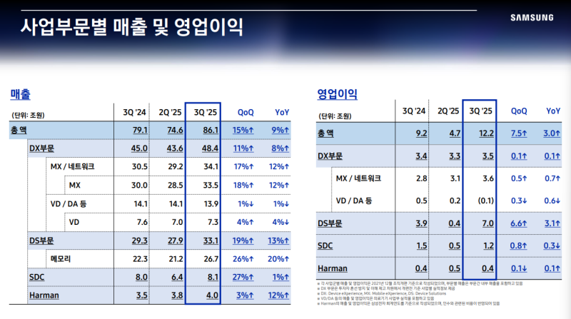 • 영업이익 12.2조원(QoQ +7.5조원) 기록