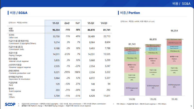 • 지급 수수료(중계권·기타): 92억 원 (QoQ +3%, YoY +7%)
