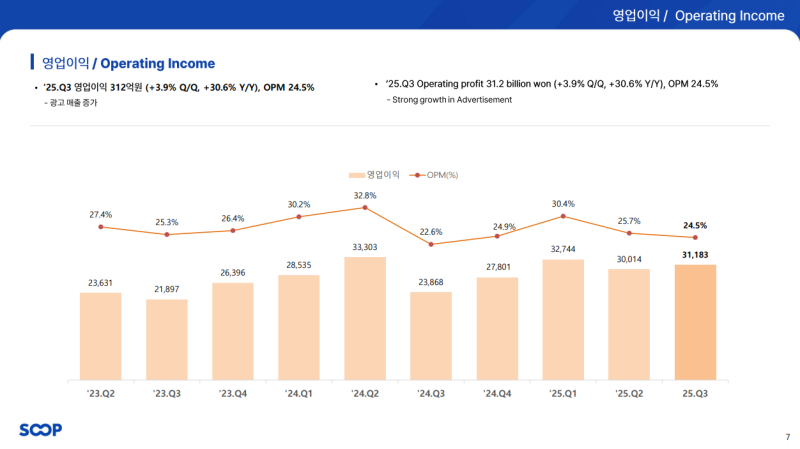 • 영업이익: 312억 원 (QoQ +3.9%, YoY +30.6%)