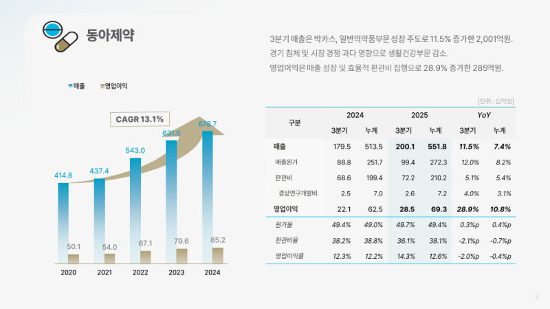 • 동아제약 영업이익 285억 원 (YoY +28.9%)으로 그룹 전체 영업이익의 약 86% 차지