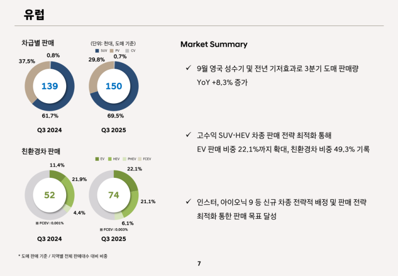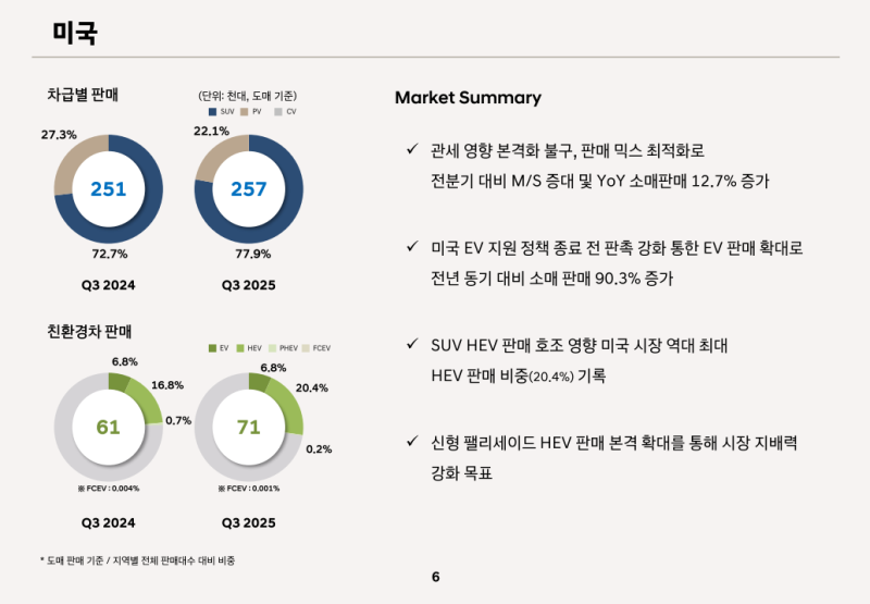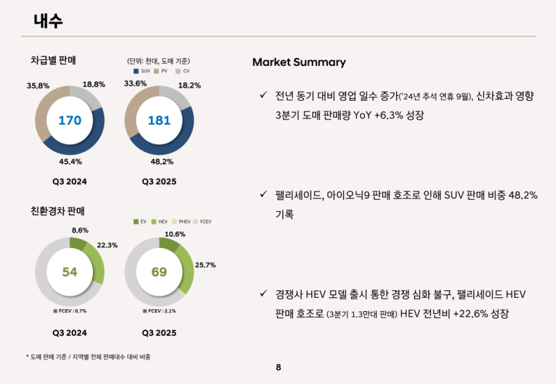 • SUV와 하이브리드 판매 호조로 성장세 유지, HEV 비중 20.4%로 역대 최고 기록