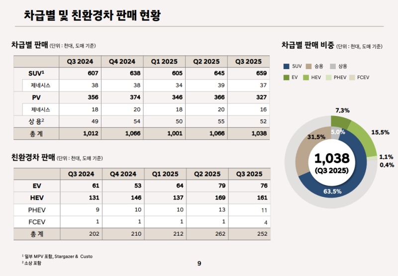 • 2025년 3분기 글로벌 도매 판매량은 103만 8천 대로 전년 대비 2.6% 증가