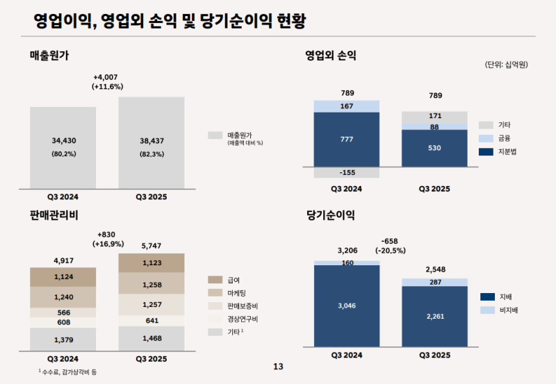 1. 3분기 최대 매출에도 관세·비용 부담으로 수익성 둔화