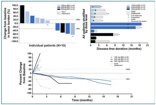 이번 발표에 따르면 재발성 또는 불응성(R/R) 골육종 환자 11명을 대상으로 ‘백토서팁’을 단독 투약했다. 그 결과, 수 차례 다른 치료에도 재발을 거듭해 온 환자 1명이 완전관해(CR)에 도달했다. 3명은 부분관해(PR) 반응을 나타냈다.