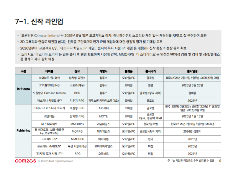 • 컴투스는 퍼블리셔로서 개발사와 긴밀히 협력하며, 장르의 본질적 재미와 적정 과금 구조를 조화롭게 완성할 계획