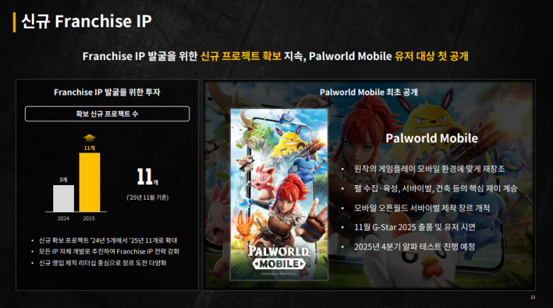 • 신규 프랜차이즈 IP 발굴을 위해 프로젝트 라인업 확대