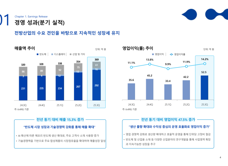 • 당사는 반도체 소재 공급을 확대하며 제품 포트폴리오 재편을 통해 매출과 수익성 개선을 동시 추진