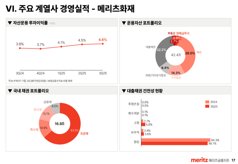 • 투자: 국내외 주식·대체투자 확대, 중장기 수익성 중심 운용 전략 지속