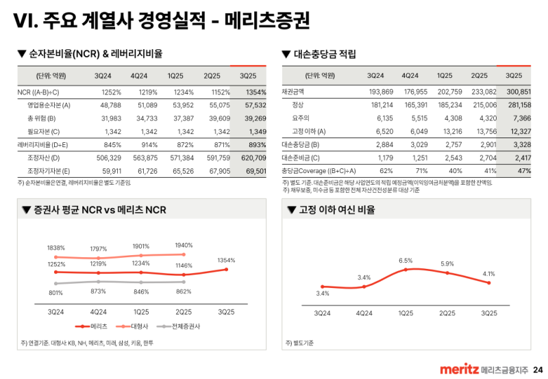 • 연결기준 순자본비율(NCR)은 적극적 관리로 1,354 %까지 상승