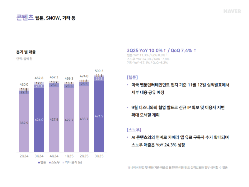 • 세부 내용은 11월 12일 예정된 웹툰엔터테인먼트 실적 발표에서 공유 예정