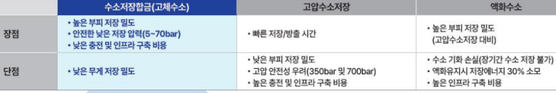 밀폐돼 있으며 협소한 공간을 보유하는 잠수함 특성상 ▲폭발 위험 및 공간을 차지하는 고압 탱크 저장 방식(기체 형태) ▲극저온 유지와 많은 장비를 필요로 하는 수소 탱크 방식(액체 형태) 등을 활용하는 것은 경제성 및 안전성이 떨어진다.