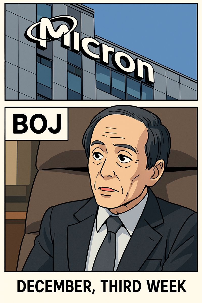 이번 주는 마이크론테크놀로지 실적 발표와 BOJ 금리 결정이 핵심 변수로 부각.