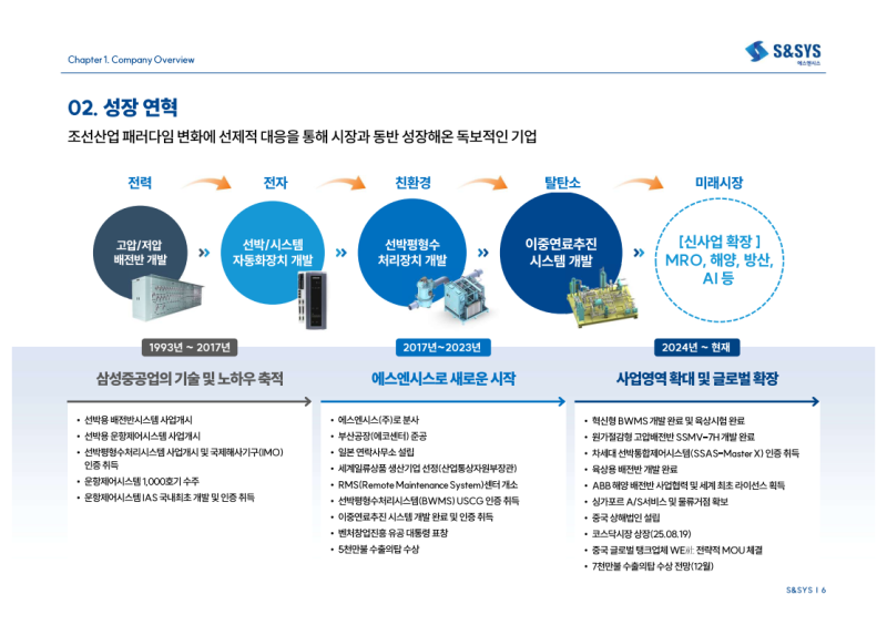 LNG선 중심의 풀 패키지 수주 실적 확보와 함정 제어 시스템 국산화를 통한 공급 선종 확대 단계 진입