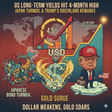일본 채권시장의 불안정과 도널드 트럼프 미국 대통령의 그린란드 관련 발언이 겹치면서 20일(현지시간) 미국 장기채 수익률이 지난해 9월 이후 최고 수준까지 치솟았다.