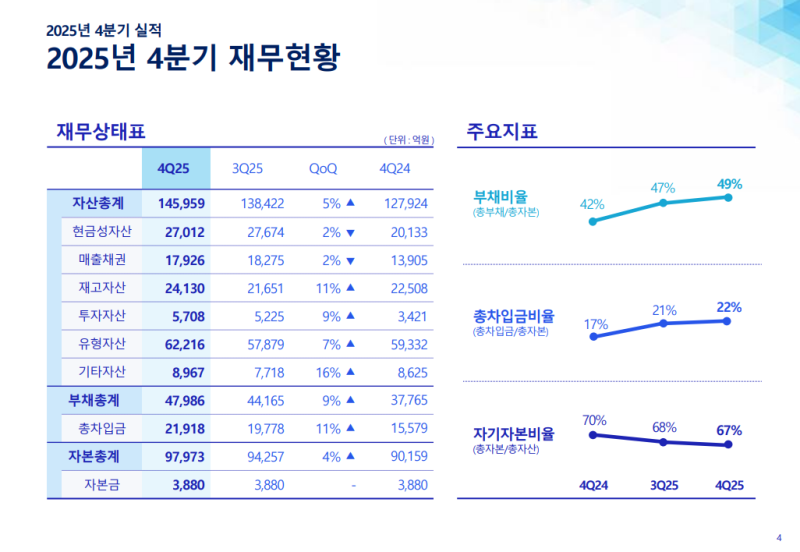 • 4Q25 기준 자산총액 14조 5959억 원 기록 (QoQ +5%)