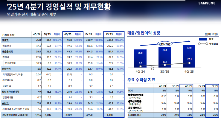 4Q25 연결 기준 전사 실적