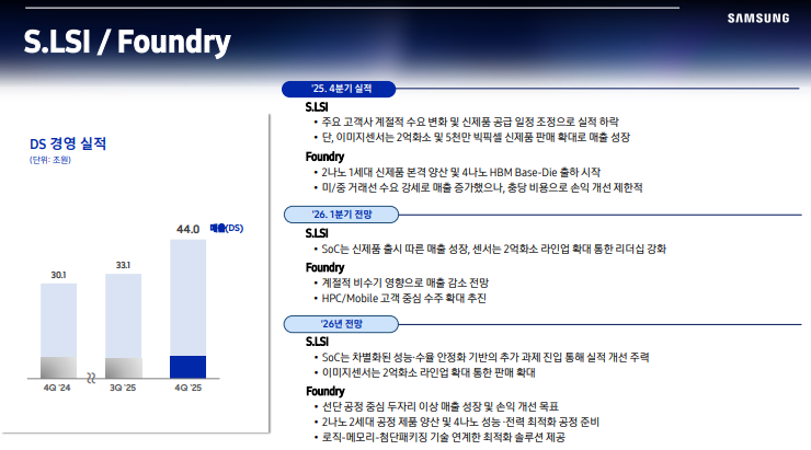 • DS 부문은 HBM4, GDDR7 등 글로벌 경쟁력을 갖춘 제품 개발을 통해 기술 경쟁력 회복