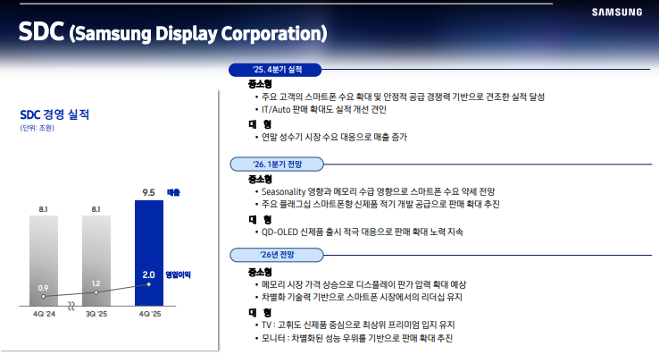 • 2025년 4분기 부문별 시설 투자는 DS 19.0조 원, 디스플레이 0.7조 원 집행