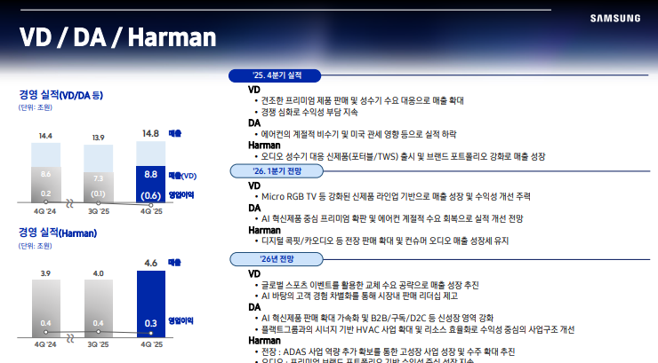 • VD 및 가전은 경쟁 심화와 관세 부담에도 불구하고 AI 기반 초개인화된 고객 경험을 통해 고부가 제품 시장 내 영향력 확대