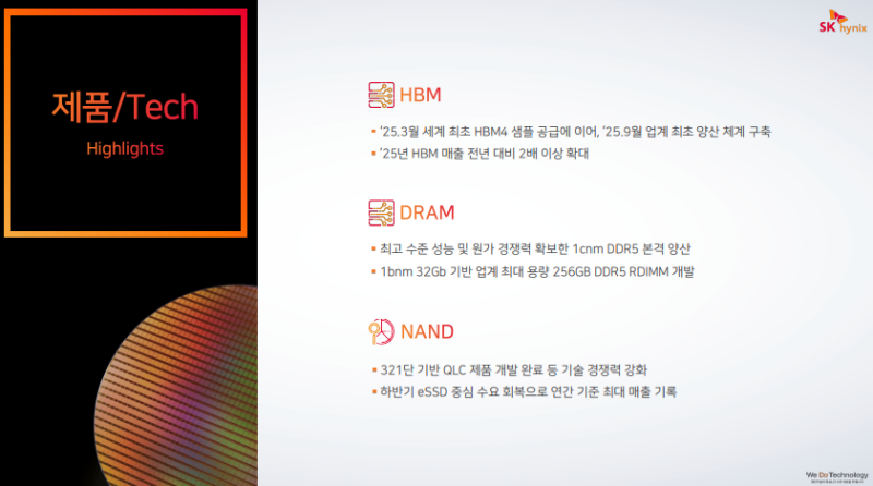 • DRAM 부문에서는 2025년 3월 세계 최초로 HBM4 샘플을 주요 고객사에 공급