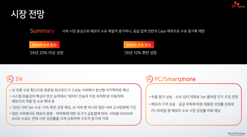 • 이에 따라 2026년 DRAM 수요는 20% 이상 성장, NAND 수요는 10% 후반 성장 수준 전망