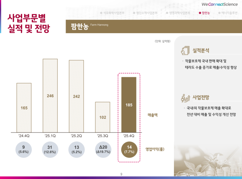 • 팜한농 부문은 4Q25 매출 1,850억 원, 영업이익 140억 원 기록