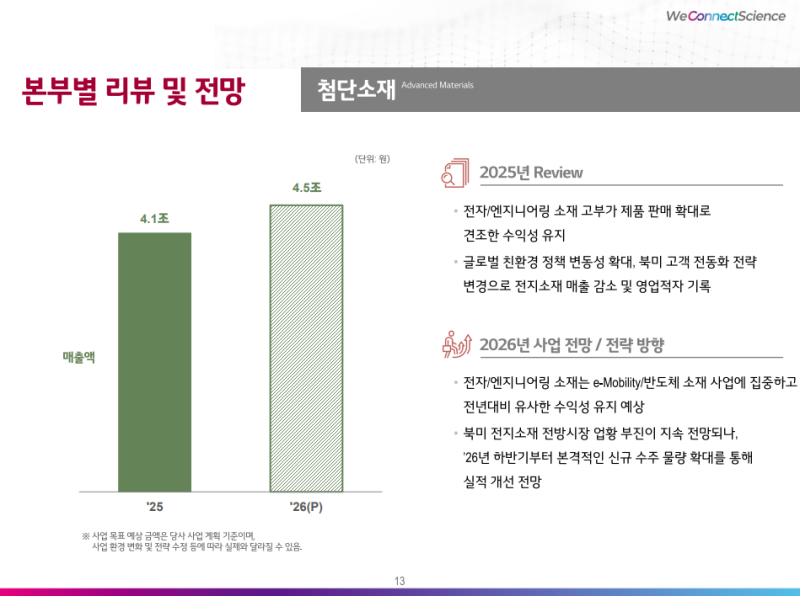 • 2026년 첨단소재 매출 목표 4.5조 원, 수익성 개선 방향 제시
