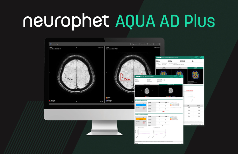 뉴로핏 아쿠아 AD 플러스는 알츠하이머병 치료제 처방 과정에 필요한 뇌 영상 분석 기능을 제공하는 종합 분석 솔루션이다.
