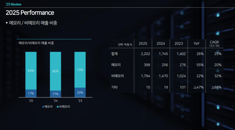 • 비메모리 내 양산 비중이 2024년 20%에서 2025년 40%로 확대