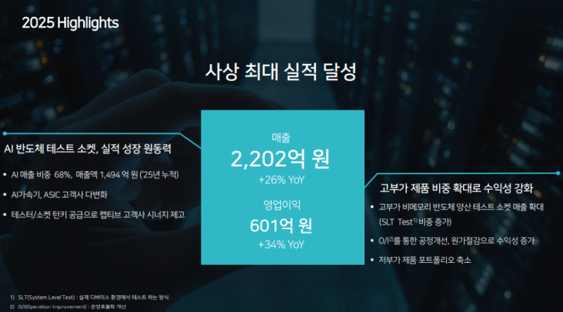 • AI GPU·ASIC 테스트 소켓 매출 전년 대비 115% 성장