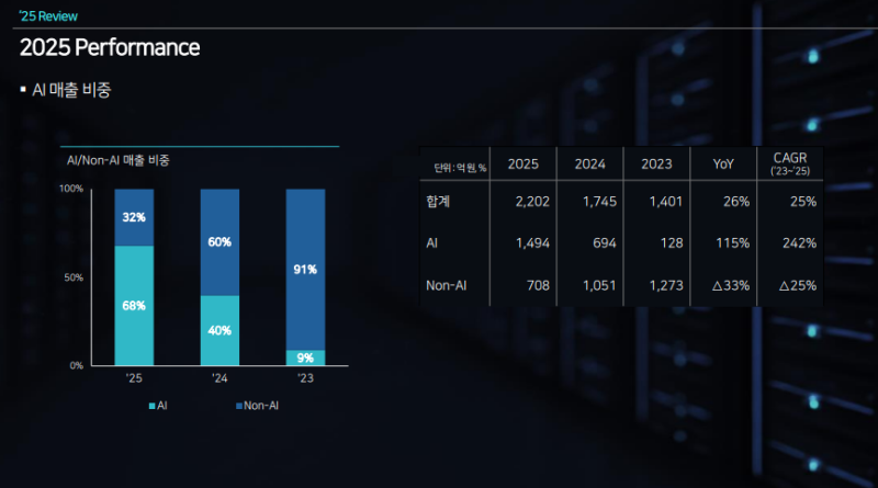 • 2026년 AI 매출 비중 70% 이상은 기존 AI 고객사의 양산 확정 물량과 반복 주문만 반영