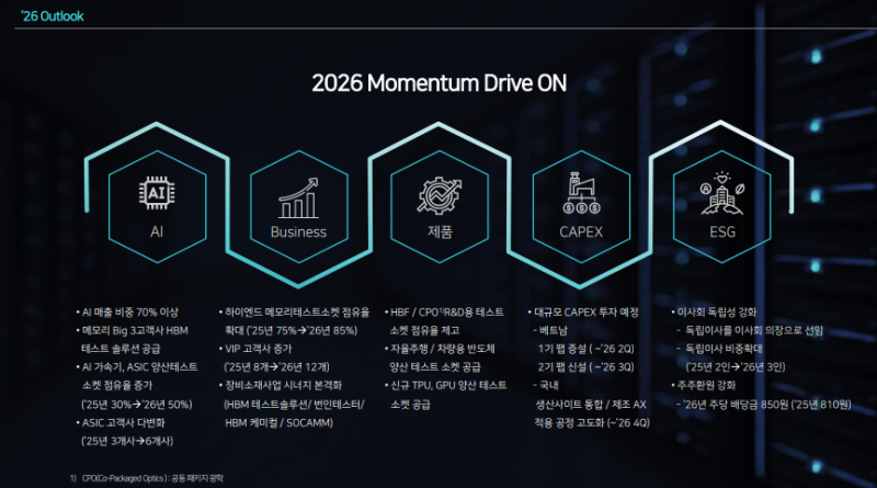 • 하이엔드 메모리 테스트 소켓 점유율을 2025년 75%에서 2026년 85%까지 확대 계획