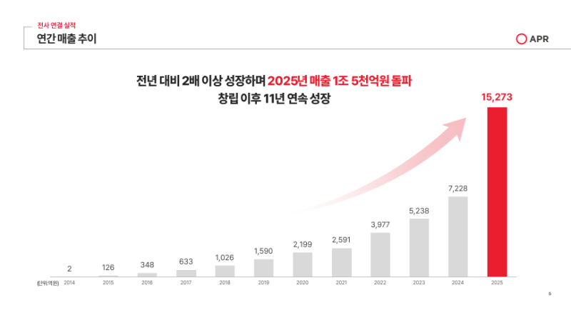 • 2025년은 전년 대비 2배 이상 성장하여 매출 1조 5,273억 원을 달성하며 역대 최고 수준의 성과 기록