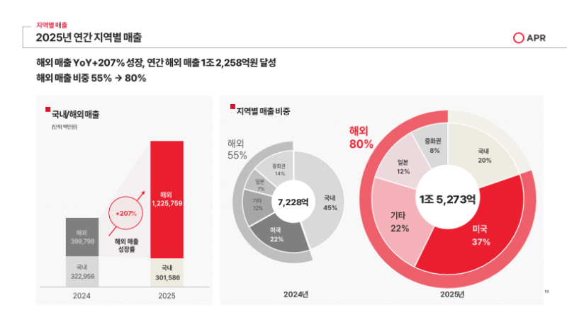 • 2025년 해외 매출은 전년 동기 대비 207% 상승한 1조 2,258억 원을 기록