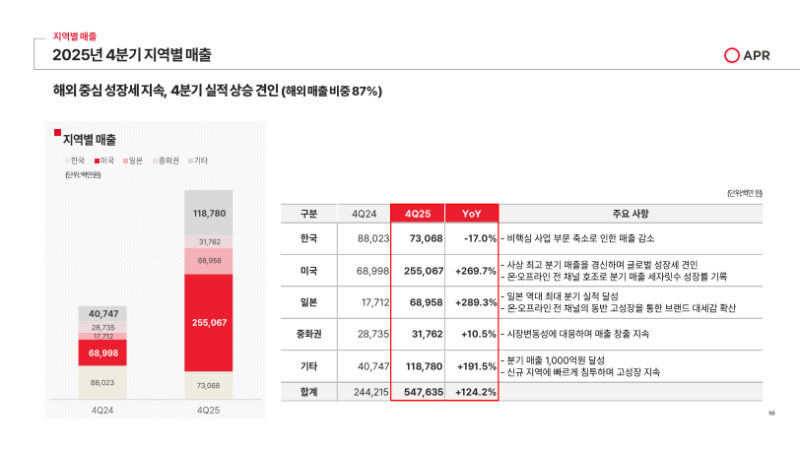 • 미국에서의 폭발적 성장 흐름이 자연적으로 글로벌로 확산되며 해외 매출이 1조 2천억 원을 돌파하는 기록적인 성과 달성