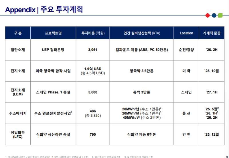 • 전지 소재 부문에서는 북미 전기차 수요 대응을 위해 건설 중인 미국 공장이 마무리 단계에 있으며 AI용 회로박 등 기능성 동박 제품도 점진적으로 확대할 예정