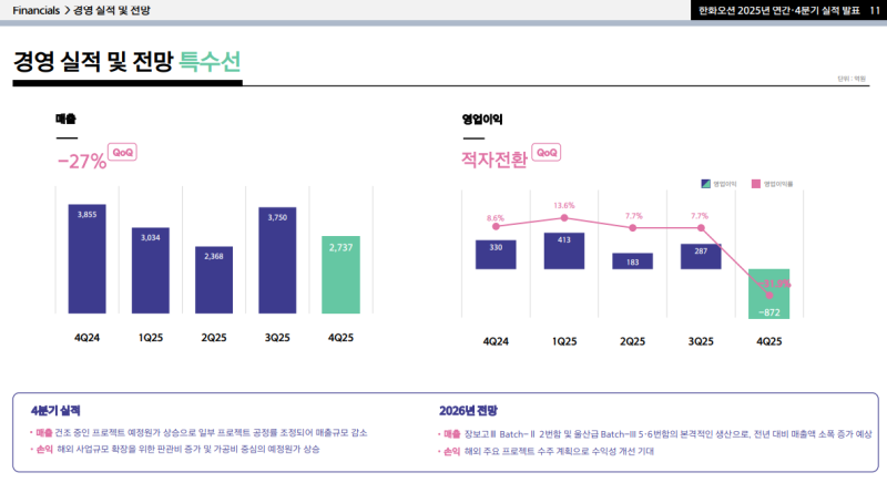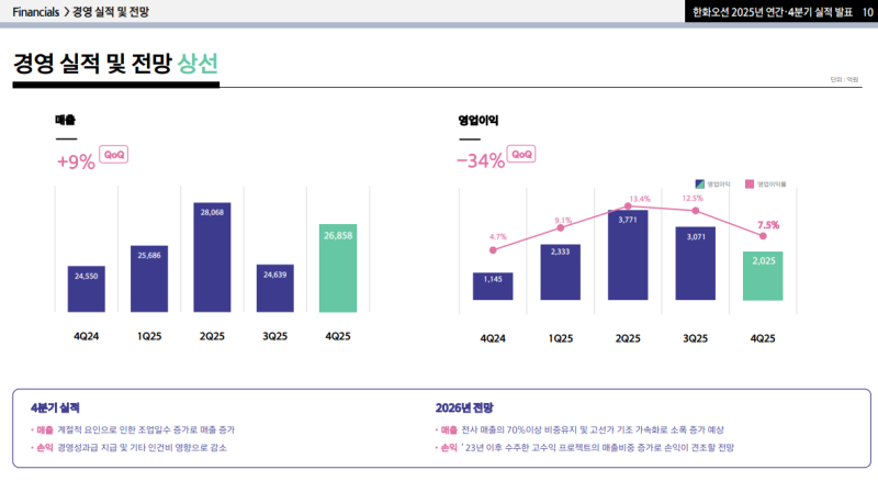 • 2025년 4분기 적자는 성과급, 판관비 증가, 예정 원가 상승 등 일회성 요인 반영 결과