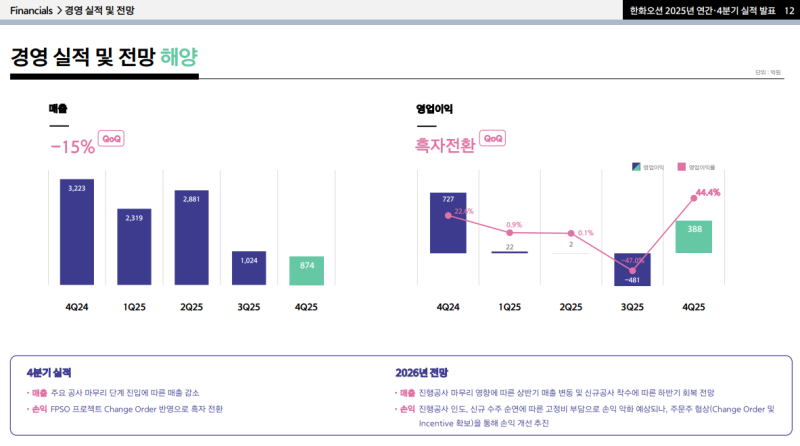 • 2025년 해양 매출 감소는 프로젝트 마무리 단계 진입에 따른 자연 감소