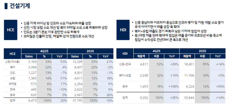 • HCE : 신흥지역 마이닝 및 인프라 수요 지속되며 매출 성장