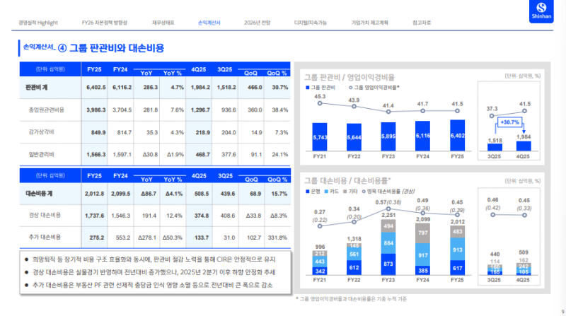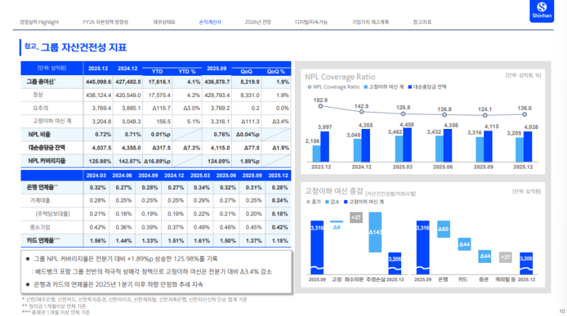 • 대손비용률 신한 고유 자산건전성 관리 전략 기반 전년 대비 안정화 전망