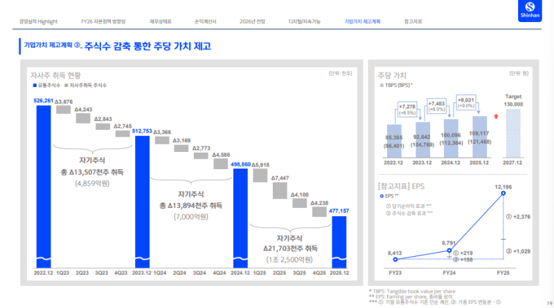 • 이사회 자기주식 5,000억 원 취득 결의, 1월 취득 완료 2,000억 원 포함 7월까지 매입 규모 7,000억 원